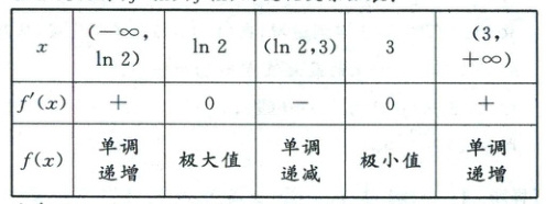 令$f^{\prime}(x)=0$,得$x=3$或$x=\ln2$,