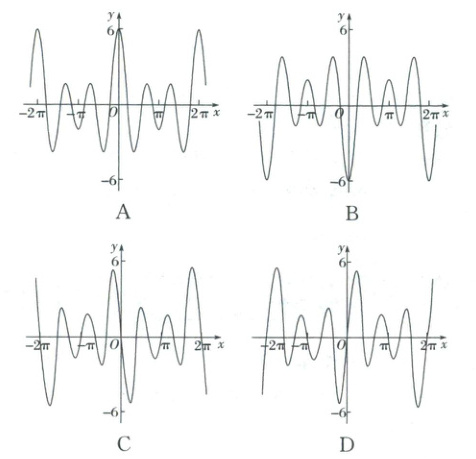 (1)A f(x)的定义域为$\mathbf{R}$,则f(−x)=cos(−x)+2cos(−2x)+3cos(−3x)=cosx+2cos2x+3cos3x = f(x),所以f(x)为偶函数,图象关于y轴对称,故排除C,D选项;又因为f