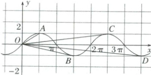 所以$\overrightarrow{OA}=(\frac{\pi}{2},1)$,$\overrightarrow{OB}=(\frac{3\pi}{2}, - 1)$,$\overrightarrow{OC}=(\frac{5\pi}{2},1)$,$\overrightarrow{OD}=(\frac{7\pi}{2}, - 1)$,