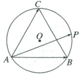 (1)A 作$BC$的平行线与圆相交于点$P$,与直线$AB$相交于点$E$,与直线$AC$相交于点$F$,