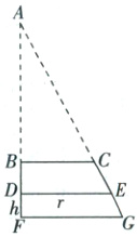由$\triangle ABC\sim\triangle ADE$,得$\frac{AB}{AD}=\frac{BC}{DE}$,即$\frac{12}{18 - h}=\frac{4}{r}$,解得$h = 18 - 3r$.