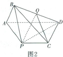 (2)如图所示,取$AD$中点$E$,连接$QE$,$CE$,
