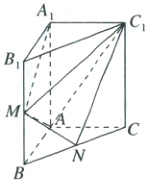 (2)如图,$S_{\triangle MNC} = S_{矩形B_1BCC_1} - S_{\triangle B_1MC} - S_{\triangle BMN} - S_{\triangle NCC_1} = 4\sqrt{2} - \sqrt{2} - \frac{\sqrt{2}}{2} - \sqrt{2} = \frac{3\sqrt{2}}{2}$.设点$N$到平面$MA_1C_1$的距离为$h$,由$V_{N - MA_1C_1} = V_{A_1 - MNC}$,得$\frac{1}{3}×\frac{1}{2}×2×\sqrt{5}· h = \frac{1}{3}×\frac{3\sqrt{2}}{2}×\sqrt{2}$,得$h = \frac{3\sqrt{5}}{5}$,即$N$到平面$MA_1C_1$的距离为$\frac{3\sqrt{5}}{5}$.