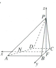 (1)可知PF⊥平面ABCD,取线段AD的中点N,连接NF,则FN//AB,FN = 2。