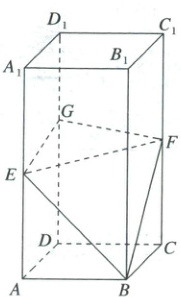 则$\overrightarrow{EF}=(-1,1,0)$,$\overrightarrow{EB}=(0,1,-1)$,$\overrightarrow{EG}=(-1,0,t - 1)$。