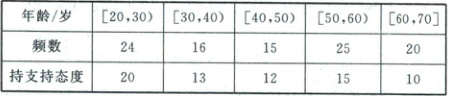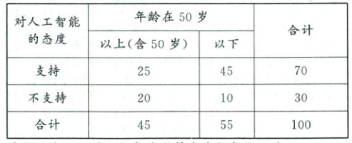 (2)依题意可知,年龄在50岁以上(含50岁)的人中对人工智能持支持态度的频率为$\frac{25}{45}=\frac{5}{9}$.