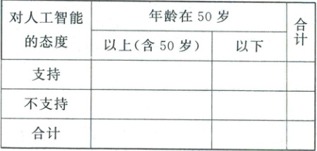 (1)完成下列 $2 × 2$ 列联表,并依据小概率值 $\alpha = 0.010$的独立性检验,判断对人工智能所持态度是否与年龄有关;