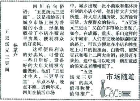 第三,《五更汤元三更面》一文生动描写了成都、重庆、乐山一些城市人民群众的日常生活,提到了城市群众看影剧、吃夜宵的场景。根据这些描述,可以得出经济体制改革搞活了市场,灵活的经营方式方便了群众,人民群众生活日益丰富和改善等认识。