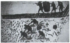 > 典例 1 (2025·江苏卷)汉画像砖是模印或捺印有图像的砖,风格处于绘画与雕塑之间。如图是一幅表现劳动人民插秧场景的画像砖拓片。该图(