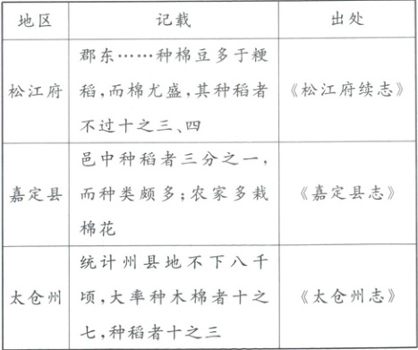 > 体验 4 (2024·福建宁德三模)下表是地方志记载的清朝前期江南部分区域农作物的种植情况。