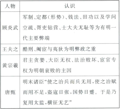 体验5 (2025·江西阶段练习) 下表是明末清初部分学者对明末政治危机的认识。这些认识(
