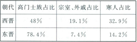 典例4 D 据图表信息,两晋时期参预中央决策的官员中,高门士族占比大幅增加,说明当时士族门阀政治盛行,专制皇权在一定程度上受到了限制和削弱,故D项正确;东晋擅权的主要是南渡的北方高门士族,不是江南士族,且未体现“擅权日甚”,排除A项;高门士族与豪强势力不能等同,排除B项;高门士族占比的增加说明当时门第选官比较盛行,客观上反映了九品中正制在当时的盛行,排除C项。