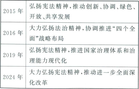 > 体验1 (2025·湖南长沙阶段练习)2014年,全国人大常委会将12月4日定为国家宪法日,下表是部分“国家宪法日”主题。这反映了(
