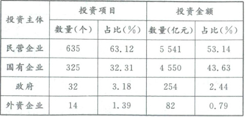 [典例 2] (2025·山东卷)重大项目建设是促长远发展的战略之举。2025 年春,山东省集中开工 1006 个重大项目,下图为分类别的项目投资,下表为分主体的项目投资。