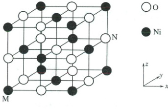 5.(2025·四川德阳二模)$NiO$和$FeO$的晶体结构[M 点原子坐标为$(0,0,0)$]均与$NaCl$相同。$NiO$的熔点高于$FeO$,$NiO$晶体在氧气中加热时部分$Ni^{2+}$被氧化为$Ni^{3+}$,晶体结构产生缺陷,其组成变为$Ni_xO$,测得其晶胞边长为$a\ pm$,密度为$\rho g· cm^{-3}$。下列说法错误的是 (