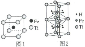 3.(2025·首都师大附中模拟)钛铁基储氢合金是由钛、铁两种元素组成的金属间化合物。一种钛铁合金的晶胞如图 1 所示,该合金吸收的氢位于体心立方八面体的中心,氢原子被 4 个钛原子和 2 个铁原子包围,如图 2 所示。
