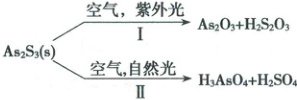 5. (2023·湖南卷)油画创作通常需要用到多种无机颜料。研究发现,在不同的空气湿度和光照条件下,颜料雌黄$(As_{2}S_{3})$褪色的主要原因是发生了以下两种化学反应: