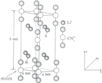 (4)活性氮物质$Li_2CN_2$能用于合成多种高附加值含氮化合物,其晶胞形状为长方体,结构如图。