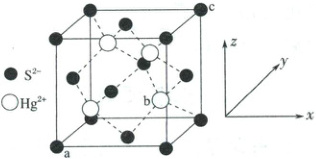 4.B $\mathrm{Hg}$在元素周期表中位于第六周期第ⅡB族,属于ds区,A错误;由图可知,$\mathrm{Hg^{2+}}$位于$\mathrm{S^{2-}}$构成的正四面体中心,B正确;在1个$\mathrm{HgS}$晶胞中,含有4个$\mathrm{Hg^{2+}}$和$8 × \frac{1}{8}+6 × \frac{1}{2}=4$个$\mathrm{S^{2-}}$,则该晶胞的边长=$\sqrt[3]{\frac{932}{\rho N_{\mathrm{A}}}} \mathrm{cm}$,而在该晶胞中$\mathrm{S^{2-}}$之间的最短距离是顶点到面心的距离,故距离为$\frac{\sqrt{2}}{2} \sqrt[3]{\frac{932}{\rho N_{\mathrm{A}}}} \mathrm{cm}$,C错误;若c的原子分数坐标为$(1,1,1)$,说明a为坐标原点,则b的原子分数坐标为$(\frac{3}{4},\frac{3}{4},\frac{1}{4})$,D错误;故选B。