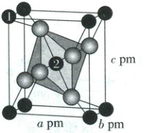 D.$ 1 $ 号原子与 $ 2 $ 号原子核间距为 $ \frac{\sqrt{a^2 + b^2 + c^2}}{2} pm $
