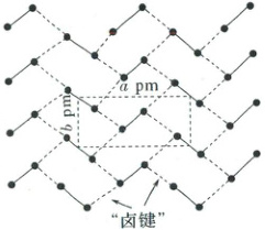 2. (2025·安徽卷)碘晶体为层状结构,层间作用为范德华力,层间距为 d pm。如图给出了碘的单层结构,层内碘分子间存在“卤键”(强度与氢键相近)。Nₐ为阿伏加德罗常数的值。下列说法错误的是(