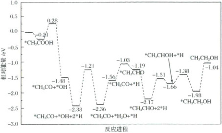 3. (2025·贵州安顺二模)我国研究人员研究了在催化剂X的作用下CH₃COOH加氢形成乙醇的反应机理,反应过程中物质相对能量与反应进程关系如图(加“*”物质为吸附态)。下列说法正确的是(