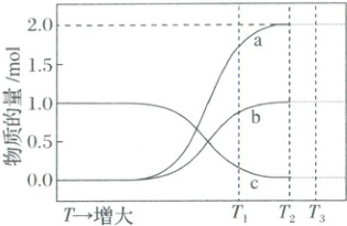 D.T₁温度时,向容器中加入b线所示物种,重新达平衡时逆反应速率增大