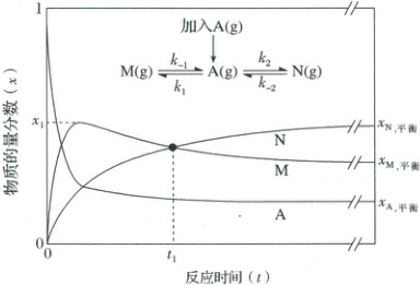 )A.该条件下$\frac{x_{N,平衡}}{x_{M,平衡}} = \frac{k_{-1}k_2}{k_1k_{-2}}$