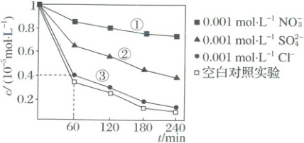 )A.该条件下,对还原效率的影响程度:Cl⁻ > SO₄²⁻ > NO₃⁻
