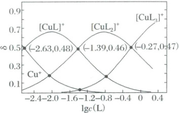 D.若$c\{[{CuL}]^{+}\} = c\{[{CuL_{3}}]^{+}\}$,则$2c\{[{CuL_{2}}]^{+}\} \lt c\{[{CuL}]^{+}\} + 3c\{[{CuL_{3}}]^{+}\}$