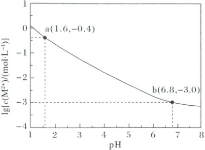 2. (2025·安徽卷)$H_{2}A$是二元弱酸,$M^{2+}$不发生水解。25℃时,向足量的难溶盐MA粉末中加入稀盐酸,平衡时溶液中$lg[c(M^{2+})/(mol· L^{-1})]$与pH的关系如图所示。