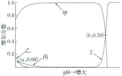 3.CD$Co^{2+}$,$C_2O_4^{2-}$,初始浓度均为$0.01mol/L$,又$K_{sp}(CoC_2O_4)=6.0×10^{-8}$,且$pH$小时,无$Co(OH)_2$,所以开始时Co主要以$CoC_2O_4$形式存在,则含碳物种最多的为$CoC_2O_4$,即甲为$\delta(CoC_2O_4)$;随pH增大,$C_2O_4^{2-}$浓度增大,丁为$\delta(C_2O_4^{2-})$;pH越小,$c(H_2C_2O_4)$越大,则乙为$\delta(H_2C_2O_4)$,丙为$\delta(HC_2O_4^-)$;A错误;根据甲与丁的交点:$c(C_2O_4^{2-})=0.5×0.01=5×10^{-3}mol/L$