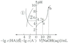 )A.曲线①表示 $ -lg \, c(HA) $ 与溶液 $ pH $ 的关系
