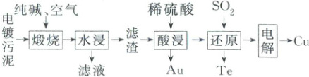 3. (2025·山东泰安模拟)某种电镀污泥主要含有碲化亚铜(${Cu_{2}Te}$)、三氧化二铬以及少量的金,用于制取${K_{2}Cr_{2}O_{7}}$、金属铜和粗碲工艺流程如下:
