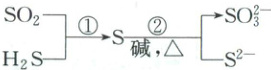$ \begin{matrix} & & SO_2 & & \\ & & \downarrow & & \\ H_2S & \xrightarrow{①} & S & \xrightarrow[碱,\triangle]{②} & \begin{matrix} SO_3^{2-} \\ S^{2-} \end{matrix} \end{matrix} $