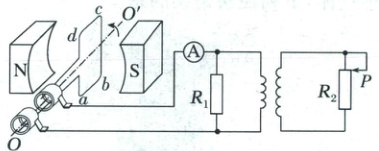 7.(2025·湖北武汉一模)如图所示,发电机线圈所处的磁场可视为匀强磁场,从图示位置开始绕轴OO'逆时针方向匀速转动。线圈阻值为R,通过电刷与外电路连接,理想变压器原线圈与副线圈匝数比为1:2,定值电阻R₁=2R,滑动变阻器R₂最大阻值为8R,开始滑片P位于最上端,忽略电流表及线路电阻,下列说法正确的是 (