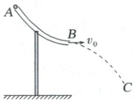 4. 一种平抛运动的实验游戏如图所示,$ AB $是内壁光滑的细圆管,被固定在竖直面内,$ B $点的切线水平,让质量为$ m $的小球(直径略小于细管的直径)从$ A $点由静止释放,沿着管壁向下运动,达到$ B $点时的速度方向水平向右,大小为$ v_0 $,接着小球从$ B $运动到$ C $,已知$ AB $的形状与抛物线$ BC $的形状完全对称相同,重力加速度大小为$ g $,下列说法正确的是 (