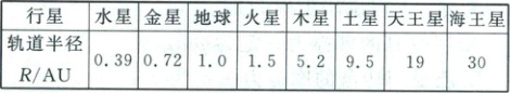 (2025·云南卷)国际编号为192391的小行星绕太阳公转的周期约为5.8年,该小行星与太阳系内八大行星几乎在同一平面内做圆周运动。规定地球绕太阳公转的轨道半径为1AU,八大行星绕太阳的公转轨道半径如下表所示。忽略其他行星对该小行星的引力作用,则该小行星的公转轨道应介于(