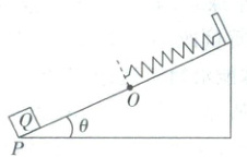[例 9] (多选)(2025·云南卷) 如图所示,倾角为 $\theta$ 的固定斜面,其顶端固定一劲度系数为 $k$ 的轻质弹簧,弹簧处于原长时下端位于 $O$ 点。质量为 $m$ 的滑块 $Q$(视为质点)与斜面间的动摩擦因数 $\mu = \tan\theta$。过程 Ⅰ:$Q$ 以速度 $v_0$ 从斜面底端 $P$ 点沿斜面向上运动恰好能滑至 $O$ 点;过程 Ⅱ:将 $Q$ 连接在弹簧的下端并拉至 $P$ 点由静止释放,$Q$ 通过 $M$ 点(图中未画出)时速度最大,过 $O$ 点后能继续上滑。弹簧始终在弹性限度内,假设最大静摩擦力等于滑动摩擦力,忽略空气阻力,重力加速度为 $g$。则 (