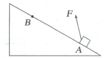[例 8] (多选)(2025·重庆九龙坡高三模拟) 如图所示,用力 $F$ 拉着一个物体从固定斜面上的 $A$ 点运动到 $B$ 点的过程中,重力做功 $-4\ J$,拉力 $F$ 做功 $9\ J$,阻力做功 $-1\ J$,则下列判断正确的是 (