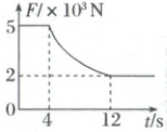 1. (2025·山西吕梁·一模) 一辆汽车由静止开始沿平直公路行驶,汽车所受牵引力 $F$ 随时间 $t$ 变化关系图线如图所示。若汽车的质量为 $1.2×10^3\ kg$,阻力恒定,汽车的最大功率恒定,则以下说法正确的是 (