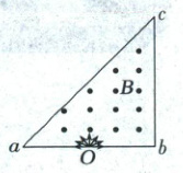 9.(2025·江西九校协作体二模)如图所示,在等腰直角三角形$ abc $区域内存在方向垂直纸面向外、磁感应强度大小为$ B $的匀强磁场,$ O $点为$ ab $边的中点,在$ O $点处有一粒子源沿纸面内不同方向、以相同的速率$ v = \dfrac{qBL}{m} $不断向磁场中释放相同的带正电的粒子,已知粒子的质量为$ m $,电荷量为$ q $,直角边$ ab $长为$ 2\sqrt{2}L $。不计重力和粒子间的相互作用力,则 (