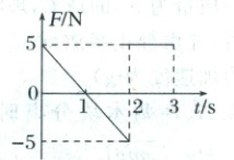 解析:由题图知$\frac{1}{2}Ft - \frac{1}{2}Ft = 0$,$t = 2\ s$时物体速度变为$0$,没有回到原点,A错误;$0 \sim 3\ s$内,由动量定理知$\frac{1}{2}Ft - \frac{1}{2}Ft + Ft' = mv - 0$,解得$v = 2\ m/s$,B错误;前$2\ s$内物体位移不为$0$,由$\bar{v} = \frac{x}{t}$知平均速度不为$0$,C错误;第$3\ s$内物体做初速度为$0$的匀加速直线运动,位移$x = \frac{1}{2}at^{2} = \frac{1}{2} × \frac{5}{2.5} × 1^{2}\ m = 1\ m$,D正确。