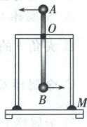 4. (2025·山东模拟预测)如图所示,支架固定在底座上,它们的总质量为$ M $。质量分别为$ 2m $和$ m $的小球$ A、B $(可视为质点)固定在一根长度为$ L $的轻杆两端,该轻杆通过光滑转轴$ O $安装在支架的横梁上,$ O、A $间的距离为$ \frac{L}{3} $,两小球和轻杆一起绕轴$ O $在竖直平面内做圆周运动,运动过程中支架和底座一直保持静止。当转动到图示竖直位置时,小球$ A $的速度为$ v $,重力加速度为$ g $。对于该位置,下列说法正确的是(