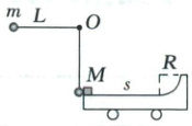 如图所示,一实验小车静止在光滑水平面上,其上表面有粗糙水平轨道与光滑四分之一圆弧轨道。圆弧轨道与水平轨道相切于圆弧轨道最低点,一物块静止于小车最左端,一小球用不可伸长的轻质细线悬挂于$O$点正下方,并轻靠在物块左侧。现将细线拉直到水平位置时,静止释放小球,小球运动到最低点时与物块发生弹性碰撞。碰撞后,物块沿着轨道运动,已知细线长$L = 1.25 m$,小球质量$m = 0.20 kg$,物块、小车质量均为$M = 0.30 kg$,小车上的水平轨道长$s = 1.0 m$。圆弧轨道半径$R = 0.15 m$。小球、物块均可视为质点。不计空气阻力,重力加速度$g$取$10 m/s^2$。