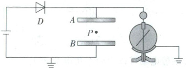 [例6](2025·河北张家口·一模)如图所示,$D$是一只理想二极管,水平放置的平行板电容器的$A$、$B$两极板间有一带电液滴,在$P$点处于静止状态。若保持极板$B$不动,当某同学分别从初始状态开始向不同方向稍微平移极板$A$(移动极板$A$后$P$点还在两极板之间)时,下列说法正确的是(