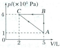 D.在$A\rightarrow B\rightarrow C\rightarrow A$一个循环过程中,气体向外界释放热量$450\ \mathrm{J}$