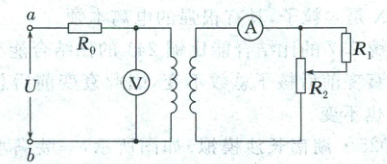 9.(2025·湖南长沙模拟)在如图所示的电路中,变压器为理想变压器,电压表、电流表均为理想交流电表,$R_{0}$、$R_{1}$为定值电阻,$R_{2}$为滑动变阻器,在$a$、$b$两端输入正弦交流电压,将滑动变阻器滑片从最上端滑到最下端的过程中,下列说法正确的是 (