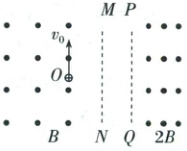[例 3] (2025·湖北卷)如图所示,两平行虚线 $MN$、$PQ$ 间无磁场。$MN$ 左侧区域和 $PQ$ 右侧区域内均有垂直于纸面向外的匀强磁场,磁感应强度大小分别为 $B$ 和 $2B$。一质量为 $m$、电荷量为 $q$ 的带正电粒子从 $MN$ 左侧 $O$ 点以大小为 $v_0$ 的初速度射出,方向平行于 $MN$ 向上。已知 $O$ 点到 $MN$ 的距离为 $\frac{3mv_0}{2qB}$,粒子能回到 $O$ 点,并在纸面内做周期性运动。不计重力,求: