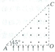 [例3] 如图所示,有一等腰直角三角形 $ AOC $,直角边长为 $ 3d $,$ AOC $ 区域范围内(包含边界)存在磁感应强度为 $ B $、方向垂直于纸面向外的匀强磁场,质量为 $ m $、电荷量为 $ +q $ 的粒子可在直角边 $ AO $ 上的不同位置垂直边界、垂直磁场射入,入射速度大小为 $ \dfrac{qBd}{m} $,$ D $、$ E $ 是 $ AO $ 边界上的两点(图中未画出),$ AD = EO = 0.5d $,不计粒子重力,则 (